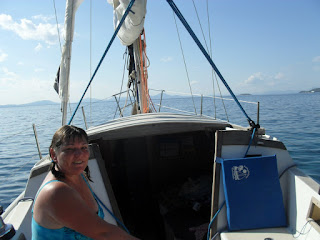 Grab a Jag, the advert said and sail the Greek islands, so last Monday we set sail with the flotilla of 16 yachts from Plataria on the west coast of Greece bound for Corfu town. The day was bright and sunny with light winds and although we were a little apprehensive being all on our own on a yacht for the very first time, the training we'ld had from our day skipper courses kicked in and we soon felt at home on our little caravan on the water. I had thought that being in a flotilla meant we would all stick together but we were soon separated by a good few miles and to all intents and purpose we were out there on our own. Othoni, was our boat, she was 27ft long and about 35 years old and in many ways it showed. But she floated, and when we hoisted the sails she managed to bob along at a sedate 2 to 3 knots in what I suppose they call slight seas. The voyage of about 15 nautical miles took about six hours with the last hour and a half with the engine purring away as the winds had completely died. We docked without incident, broke out a beer, and congratulated ourselves at completing our first solo sail without incident, tomorrow would be a different day.